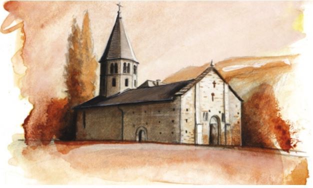Eglise romane de Saint-Pierre-de-Clages, Valais (Suisse) édifiée au XIe siècle par bénédictins de Lyon, style clunisien à clocher octogonal, érigée sur le lieu du martyre de saint Florentin, second évêque d'Octodure vers l'an 407. prieuré de l'Abbaye d'Ainay jusqu'en 1580 où le prieuré fut incorporé à celui de Sion. Elle devint rectorat de 1661 à 1945 où fut créée la paroisse de Saint-Pierre-de-Clages. Restaurée en 1967.